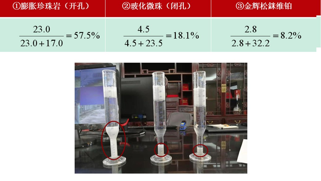 ——開孔珍珠巖/?;⒅?金輝松銤維鉑沉降率對比試驗數(shù)據(jù)(20min沉降)——