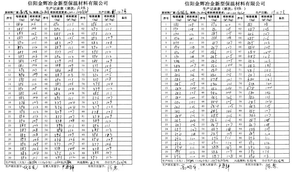 ——金輝第五代松銤維鉑生產(chǎn)線—日生產(chǎn)記錄——